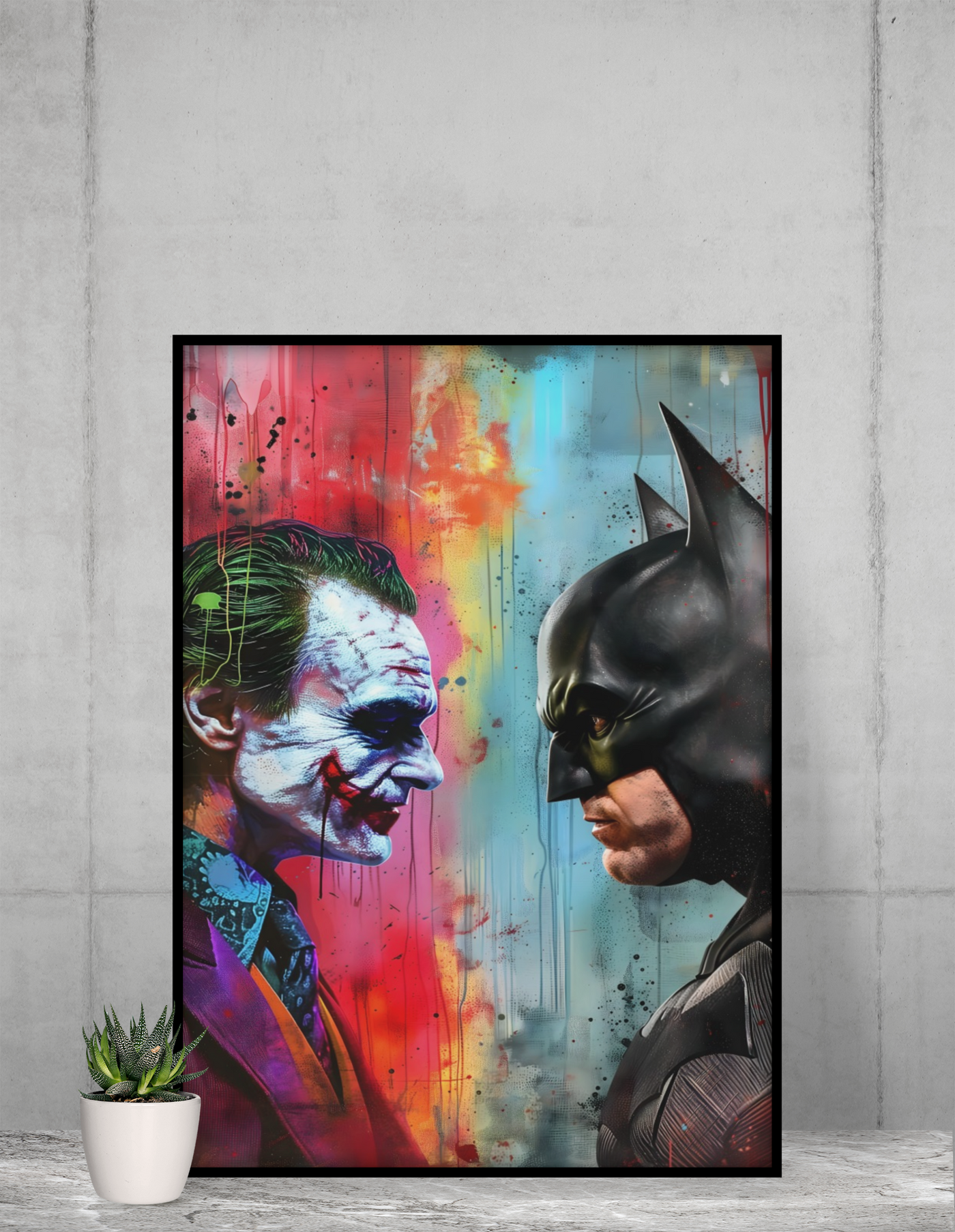 Batman vs Joker Face Off Acrylic Wall Art A3 Black Frame