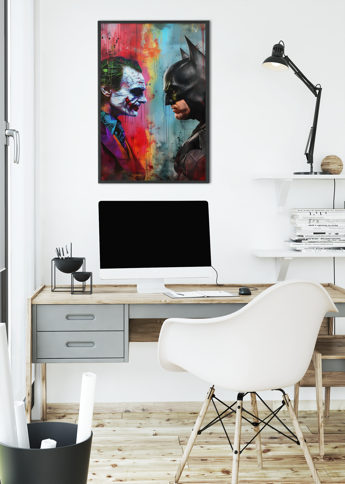 Bring cinematic intensity to your walls with this powerful Batman vs Joker face-off acrylic wall art, showcasing the legendary clash between order and chaos. This dramatic artwork captures the psychological rivalry between the Dark Knight and his greatest enemy in a bold modern pop-art style.