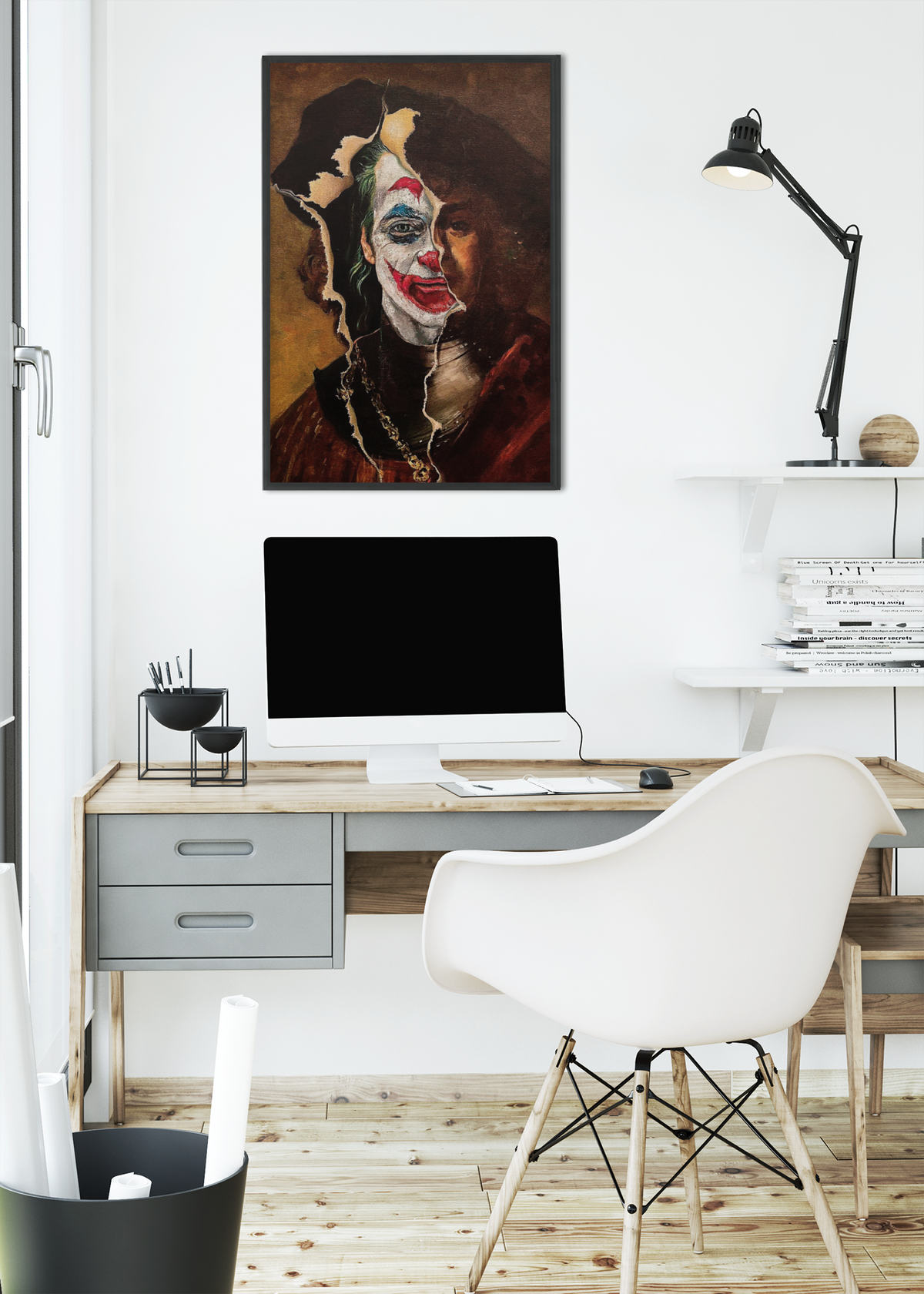The torn-canvas fusion design represents dual personality and artistic rebellion, making it ideal for movie lovers, pop art collectors, gaming setups, studios, and contemporary home décor spaces.