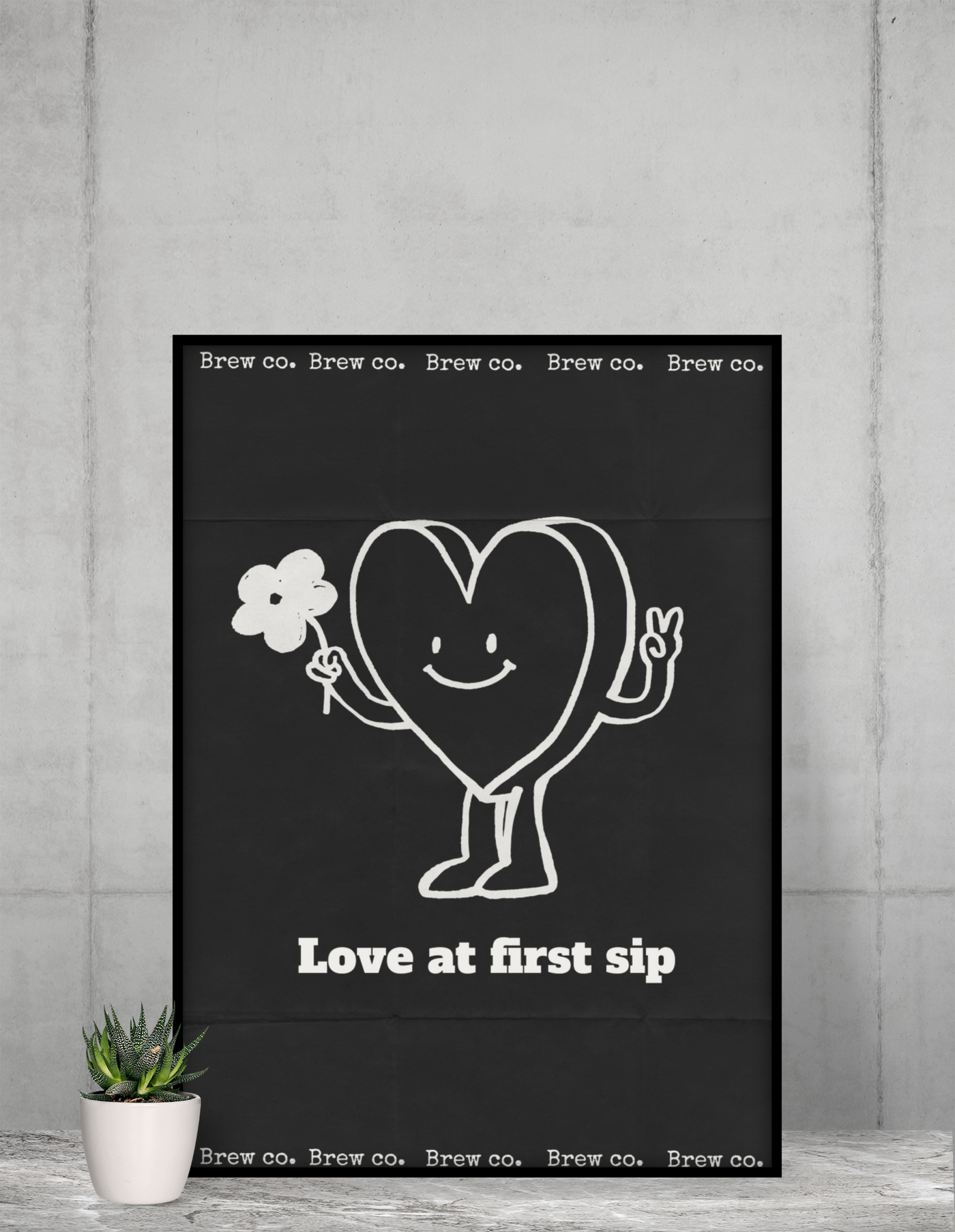 Love at First Sip Coffee Poster Cafe Wall Art A3