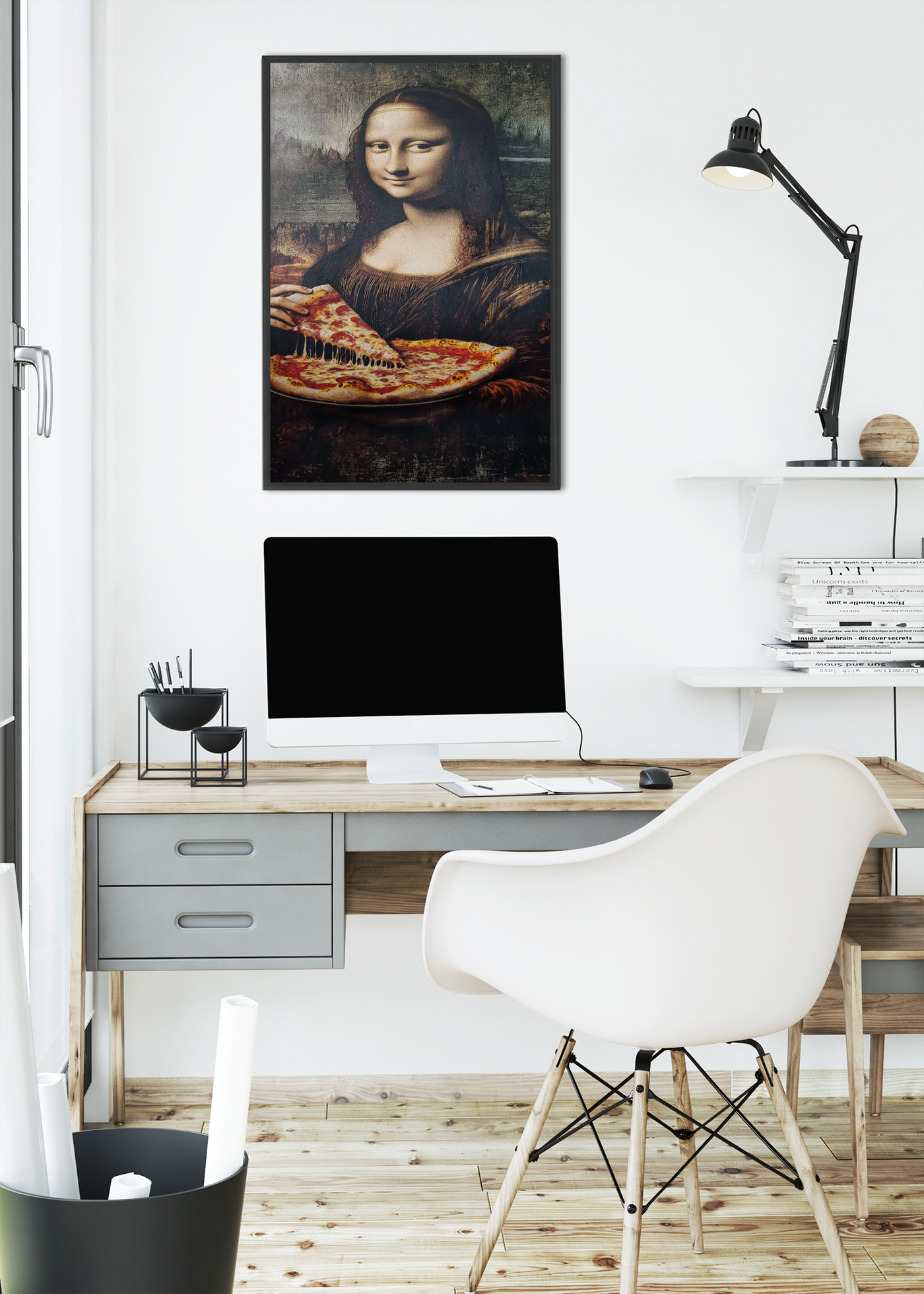 Add humor, creativity, and iconic artistic fusion to your interiors with this Mona Lisa pizza pop art acrylic wall art. This unique design blends classical Renaissance art with modern pop culture aesthetics, turning one of history’s most famous portraits into a fun and eye-catching décor statement.