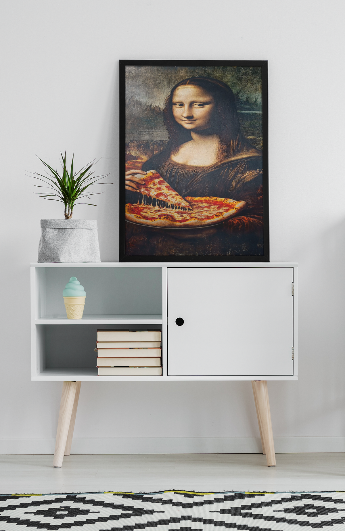 Mona Lisa Pizza Pop Art Acrylic Wall Art A3 Black Frame